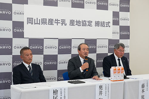 本協定に基づき、生産・製造・販売を担う三者が連携し、岡山県産生乳の価値を生かした牛乳を継続的かつ安定的に消費地へ届けてまいります。あわせて、生産背景を大切にした牛乳づくりを通じて、生産者と消費者をつなぎ、牛乳の消費拡大と地域酪農の持続・発展を目指します。