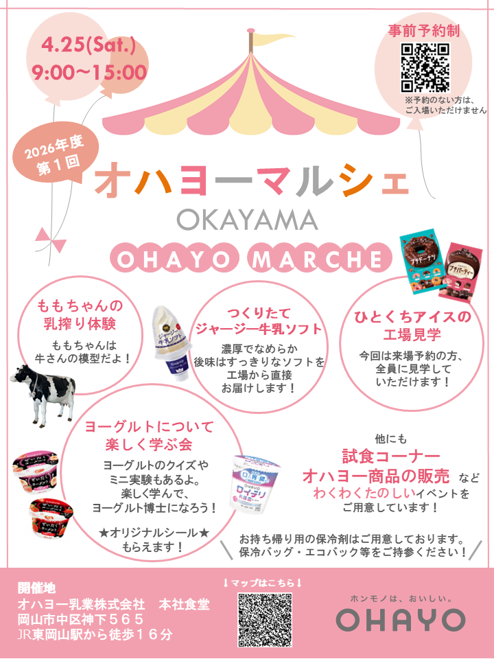 オハヨー乳業株式会社は、2026年4月25日(土)、オハヨー乳業の本社工場でオハヨーマルシェを開催いたします。